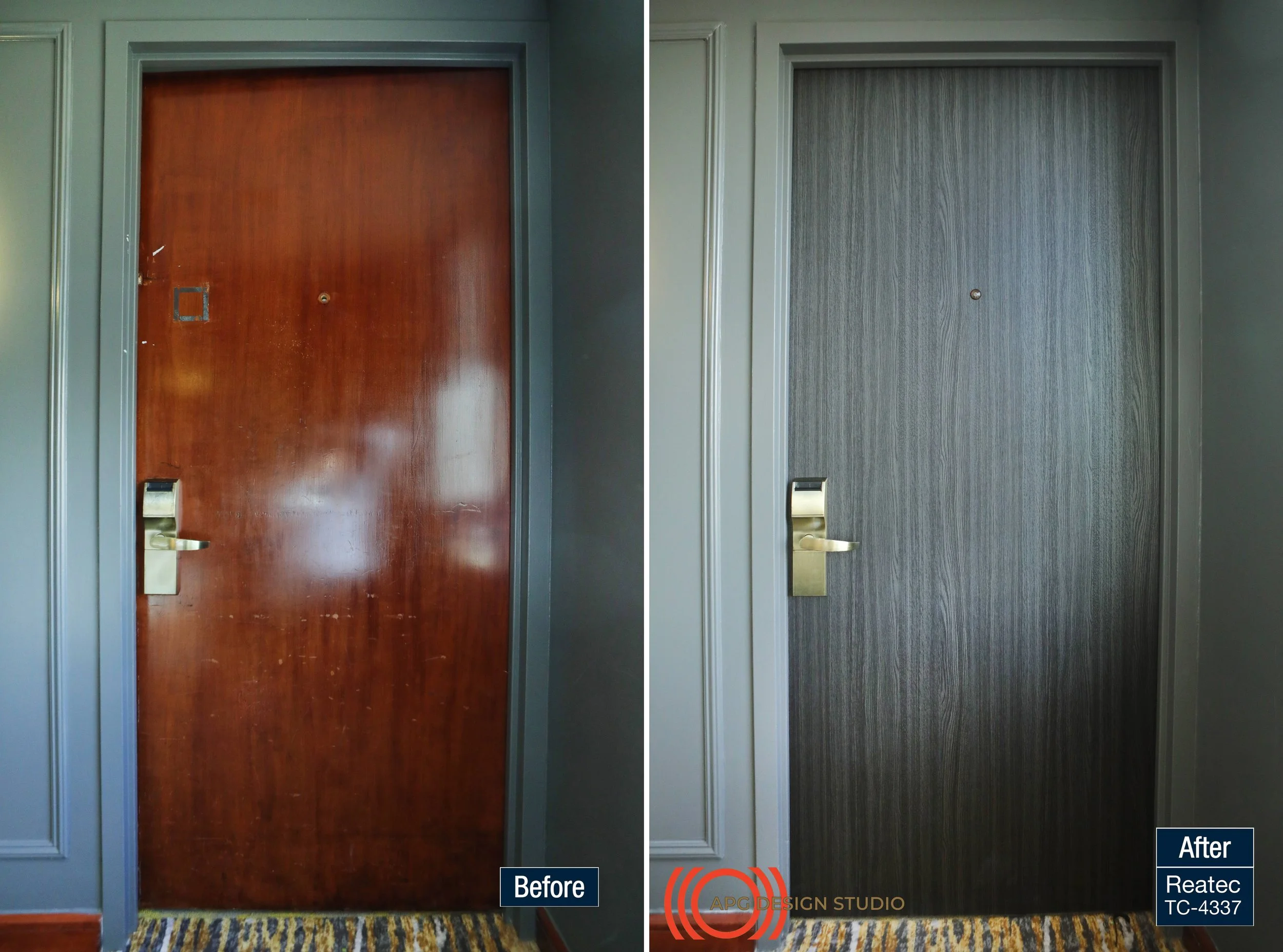 Refinish doors, millwork, casework, elevator cabs and countless other surfaces for a more sophisticated look.